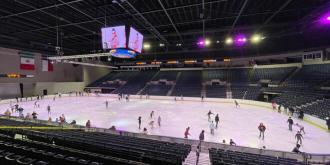 LAREDO, TX.- Sames Auto Arena ofrece una alternativa para que las familias puedan combatir el intenso calor de la región patinando sobre hielo.